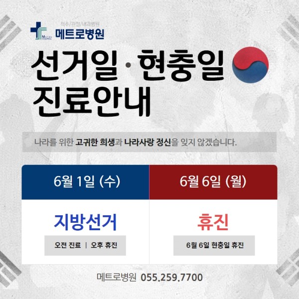 메트로병원 6월 선거일, 현충일 진료 일정 안내