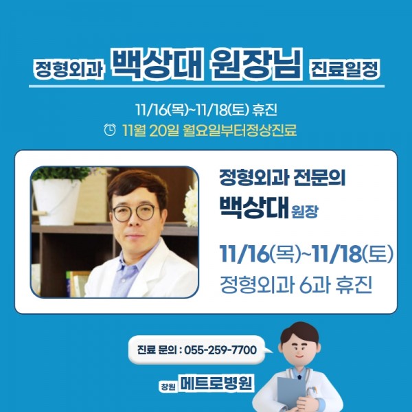 메트로병원 정형외과 5과, 6과 11월 휴진일 안내
