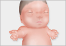 연골무형성증은 연골의 뼈 형성 능력에 장애가 있는 질환으로, 정상에 비해 큰 머리, 넓고 튀어나온 이마, 낮은 콧대, 짧은 팔과 다리, 두드러진 복부와 엉덩이, 그리고 삼지창손이라 불리는 짧은 손가락이 특징적으로 나타납니다.