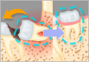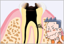 인체에서 가장 단단한 조직인 치아는 겉모습과 달리 그 내부에 치수라고 부르는, 신경과 혈관이 풍부한 연조직이 있습니다. 치수는 치근, 즉 치아의 뿌리 끝까지 뻗어 있으며, 근관이라는 미세한 공간에 둘러싸여 있습니다. 근관 속의 치수는 뿌리 끝의 좁은 구멍(치근단공)을 통해 치근을 둘러싸고 있는 잇몸 뼈(치조골)속의 혈관과 신경에 연결되어 있습니다